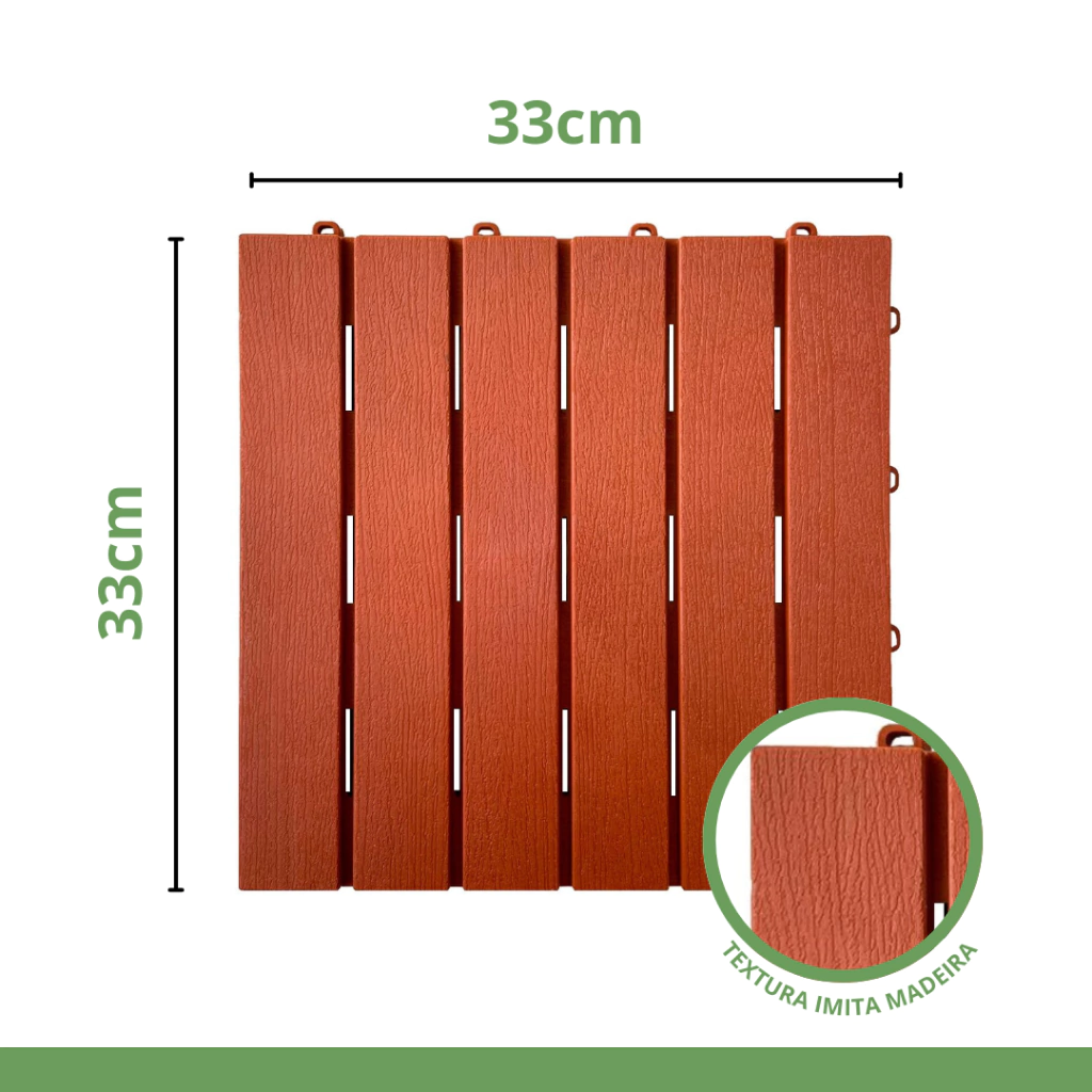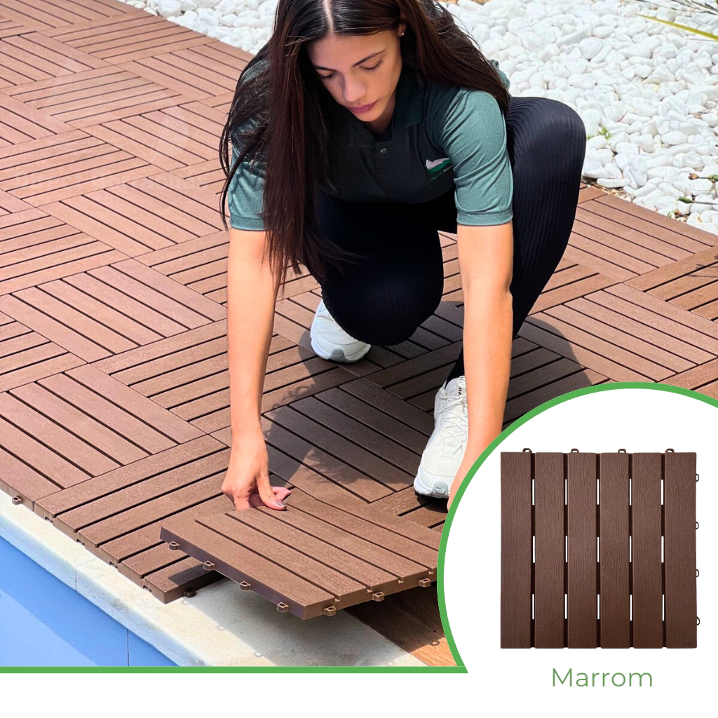 Chegou o novo Deck Modular, com fácil aplicação, feito com alta tecnologia de sistemas de fixação, possui um sistema de encaixe perfeito, o que não exigi mão-de-obra profissional para manuseá-lo, permite o uso do método “Faça você mesmo”, feito para ser colocado sobre um piso existente, sem o uso de cola ou parafuso.Além de fácil, o visual de um ambiente pode ser transformado para uma estética sofisticada em poucas horas, uma verdadeira reforma sem sujeira ou maiores complicações.