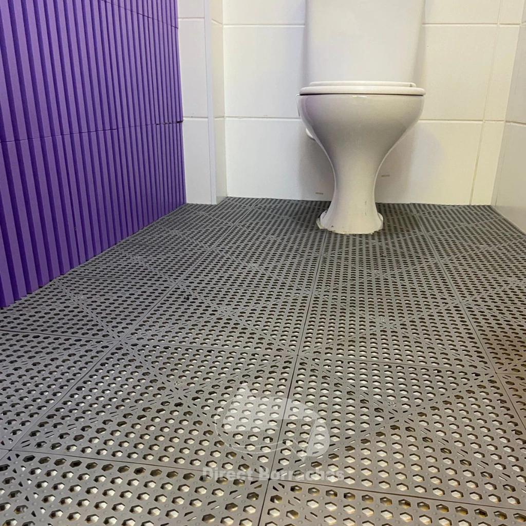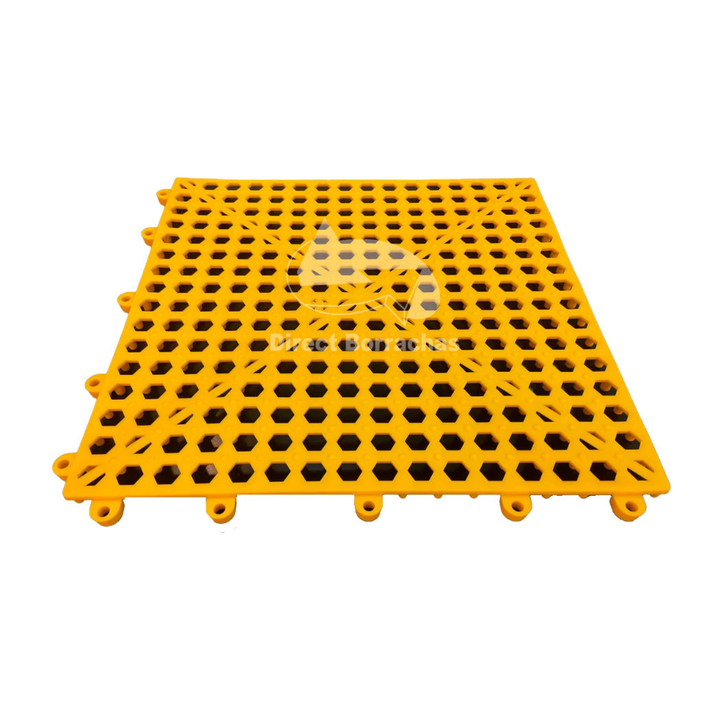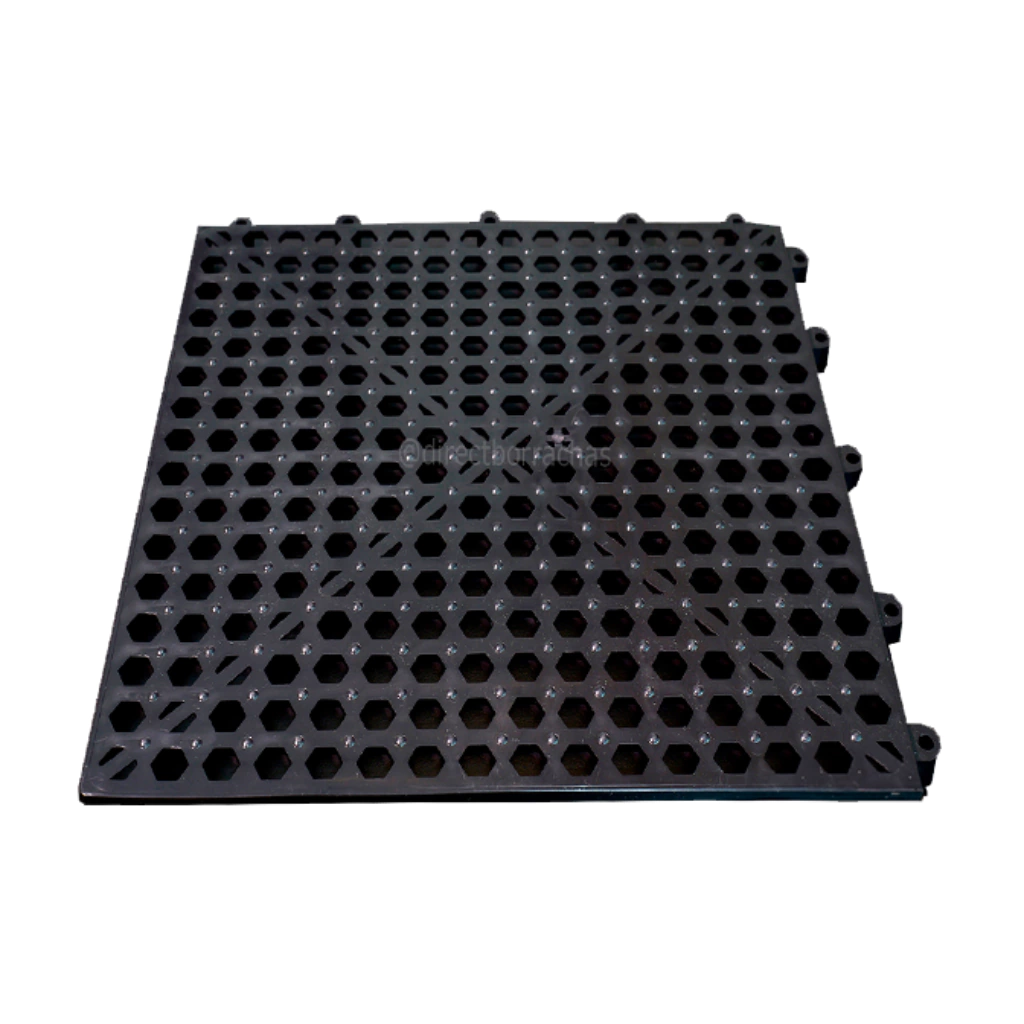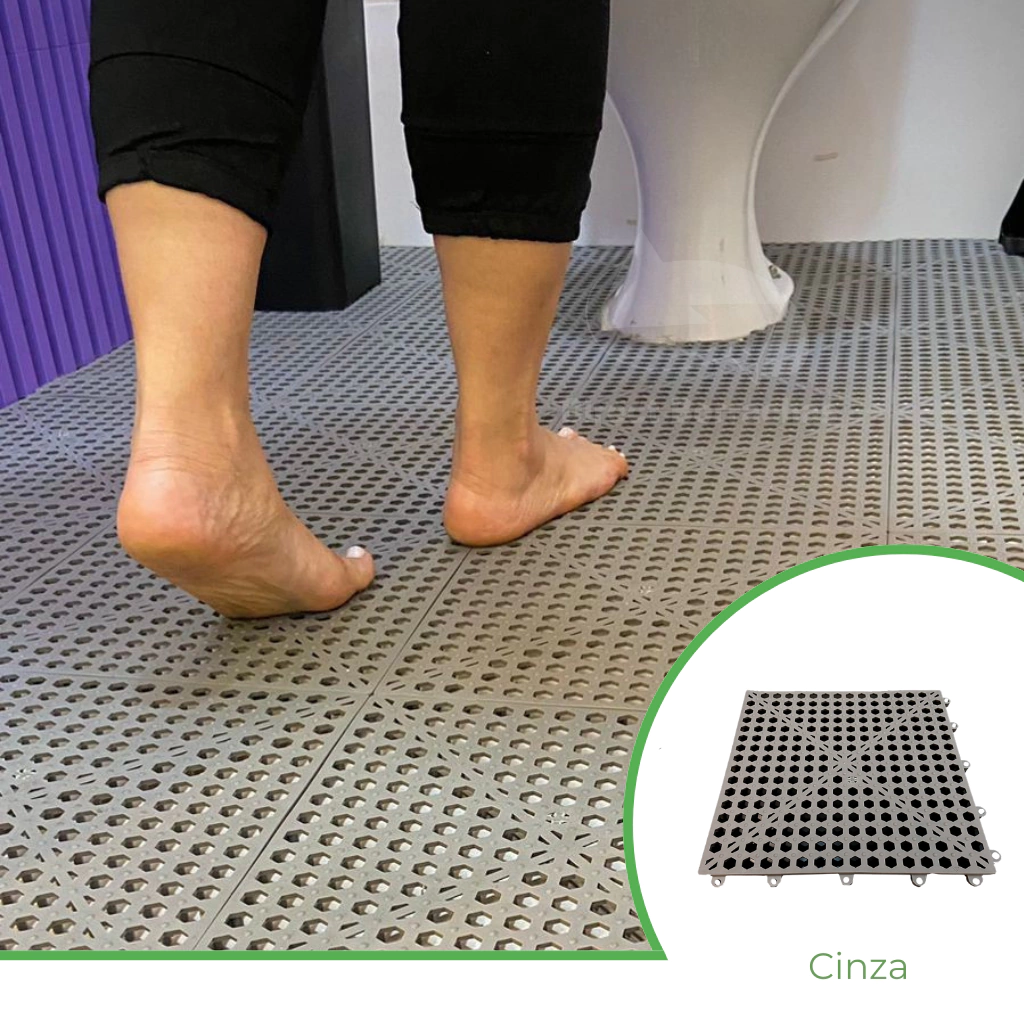 O Estrado Antiderrapante Modular de Plástico PVC é piso de segurança para áreas úmidas e molhadas. O material e formato empregados em sua constituição o tornam ideal como piso isolante leve, resistente, modular, removível, higiênico e confortável.