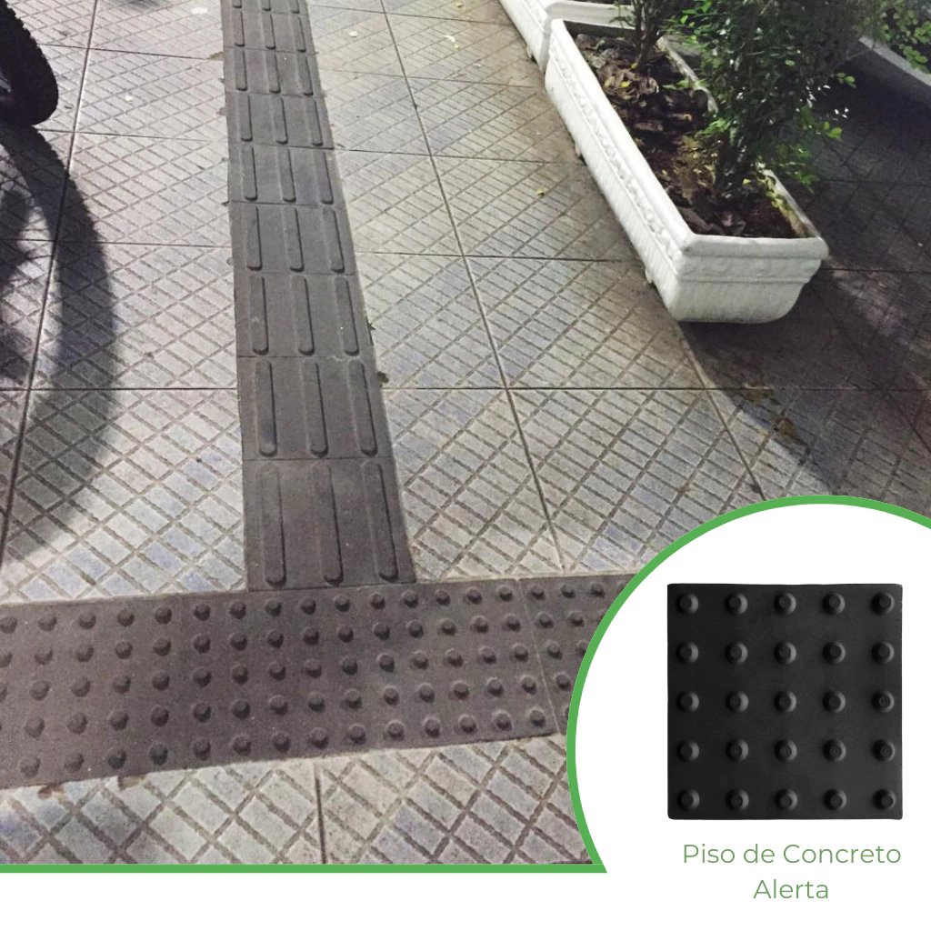 O Piso Tátil Concreto é utilizado para auxiliar a pessoa com deficiência visual ou baixa visão a percorrer por ambientes externos, sinalização de ponto de ônibus, entrada de comércios, e outros obstaculos como: postes, escadas, rampas, cercas, orelhões, e entre outros.